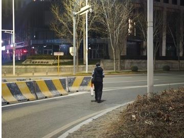 远洋乐堤港东南路口:没有斑马线,行人穿行车流太危险
