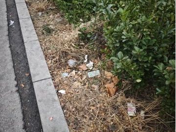 地铁站旁绿化带常被扔垃圾,市民:不能投诉曝光才清理