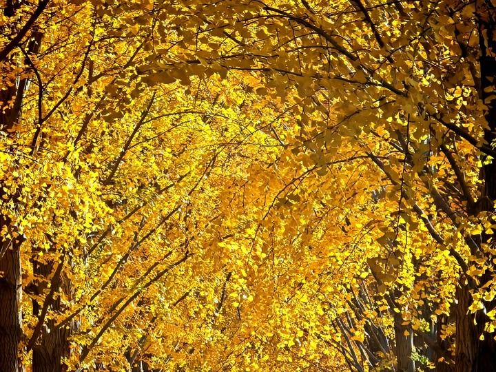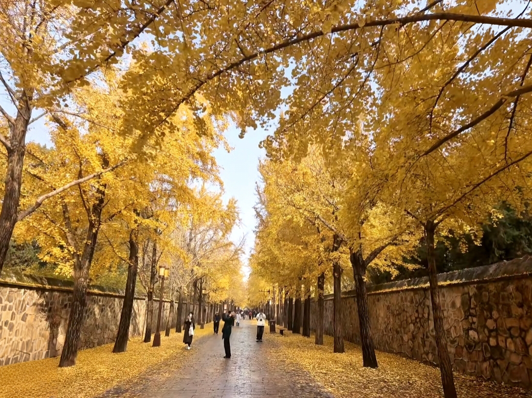 北京三里河:银杏满树金黄,游客争相合影