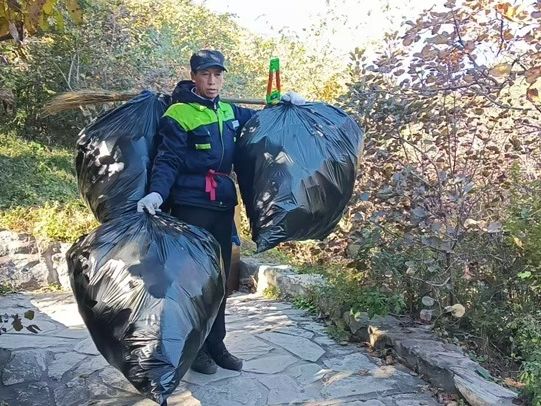 香山有支“园林美容师”队伍,每天背2吨垃圾下山