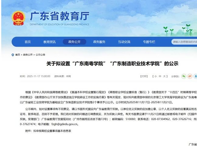 公示!北京理工大学珠海学院拟转设为广东南粤学院