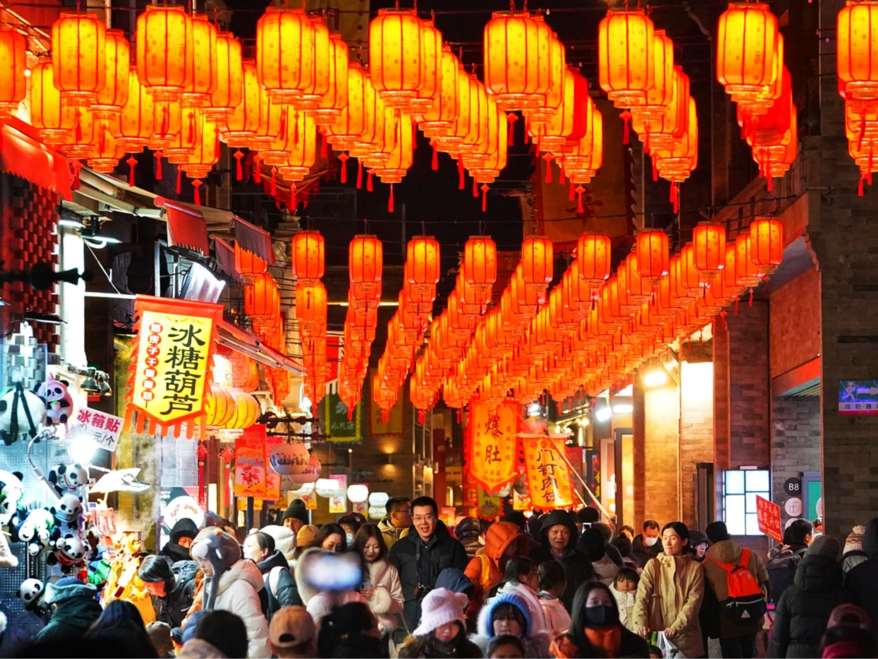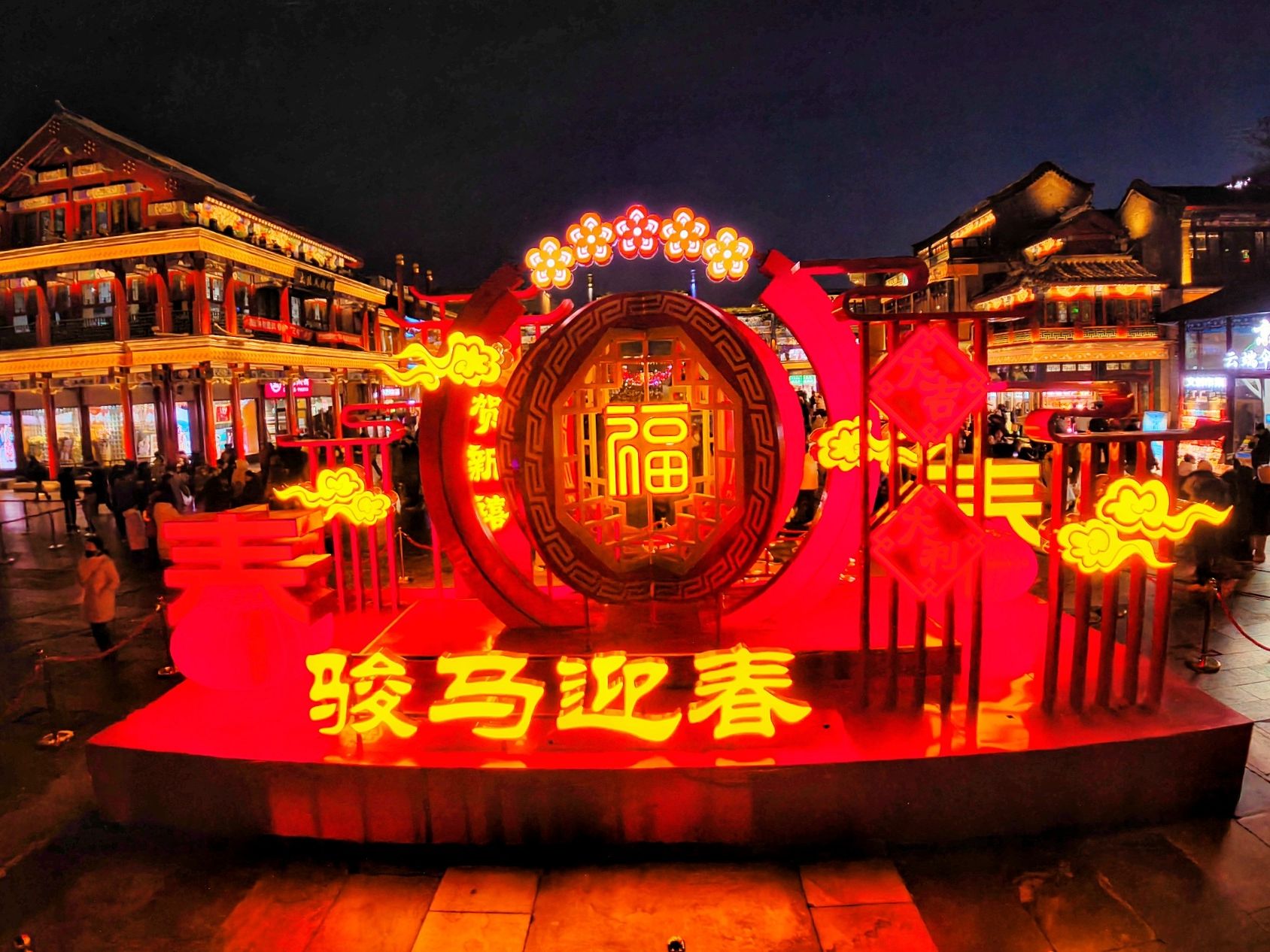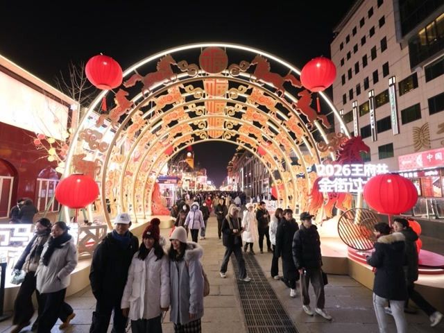 “王府八骏”亮相金街,市民打卡“十二时辰”寻年味