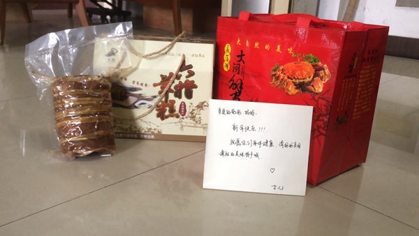 江苏省建湖县纪委监委干部徐笑笑收到来自青岛的家乡味道。
