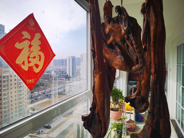河南省郑州航空港区纪检监察工委干部蒋洪超父母寄来的腊味。