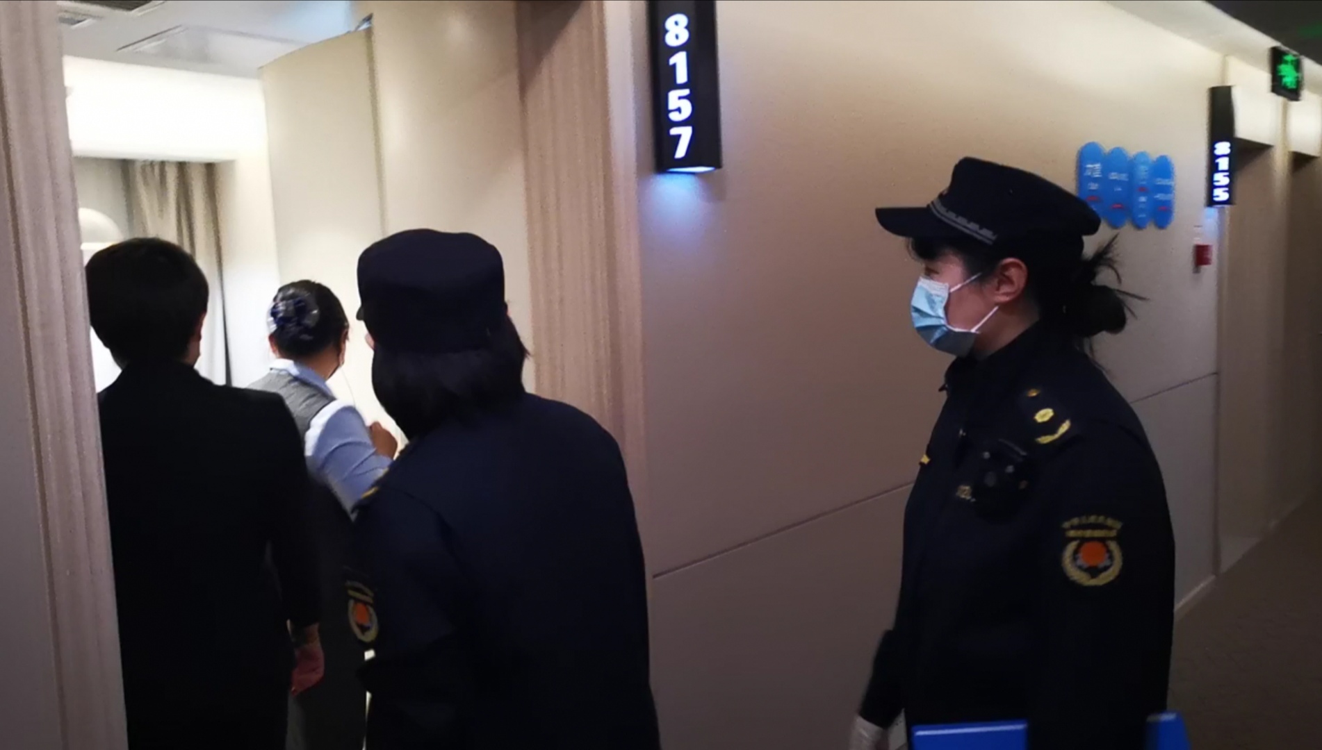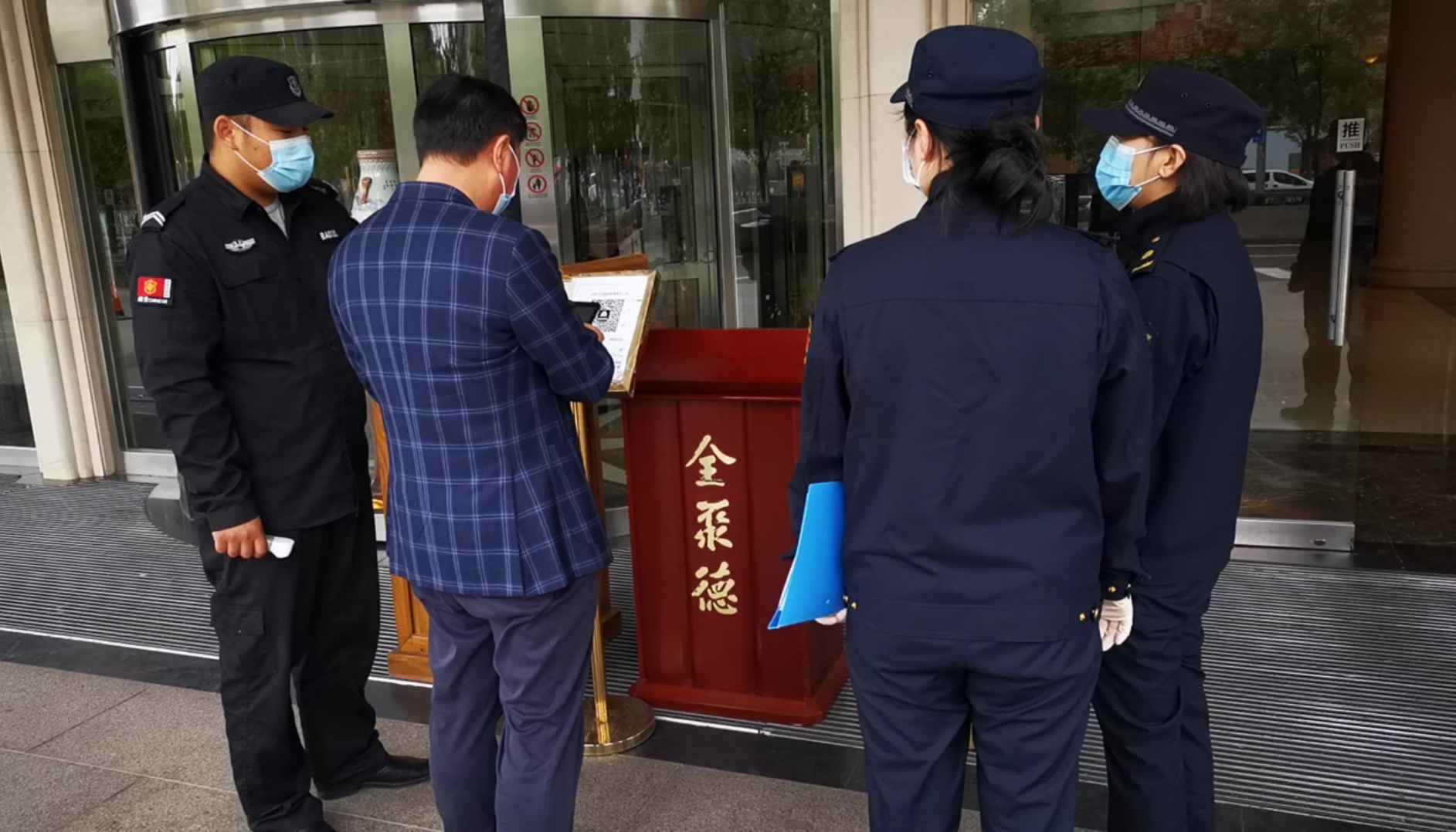 检查中,大多数宾馆酒店都有专人监督扫码测温情况。但仍发现个别宾馆存在体温监测岗无人值守的问题,前台大厅仅有1-2名工作人员在忙碌着办理入住或开具发票,执法人员找来负责人后当场责令改正。