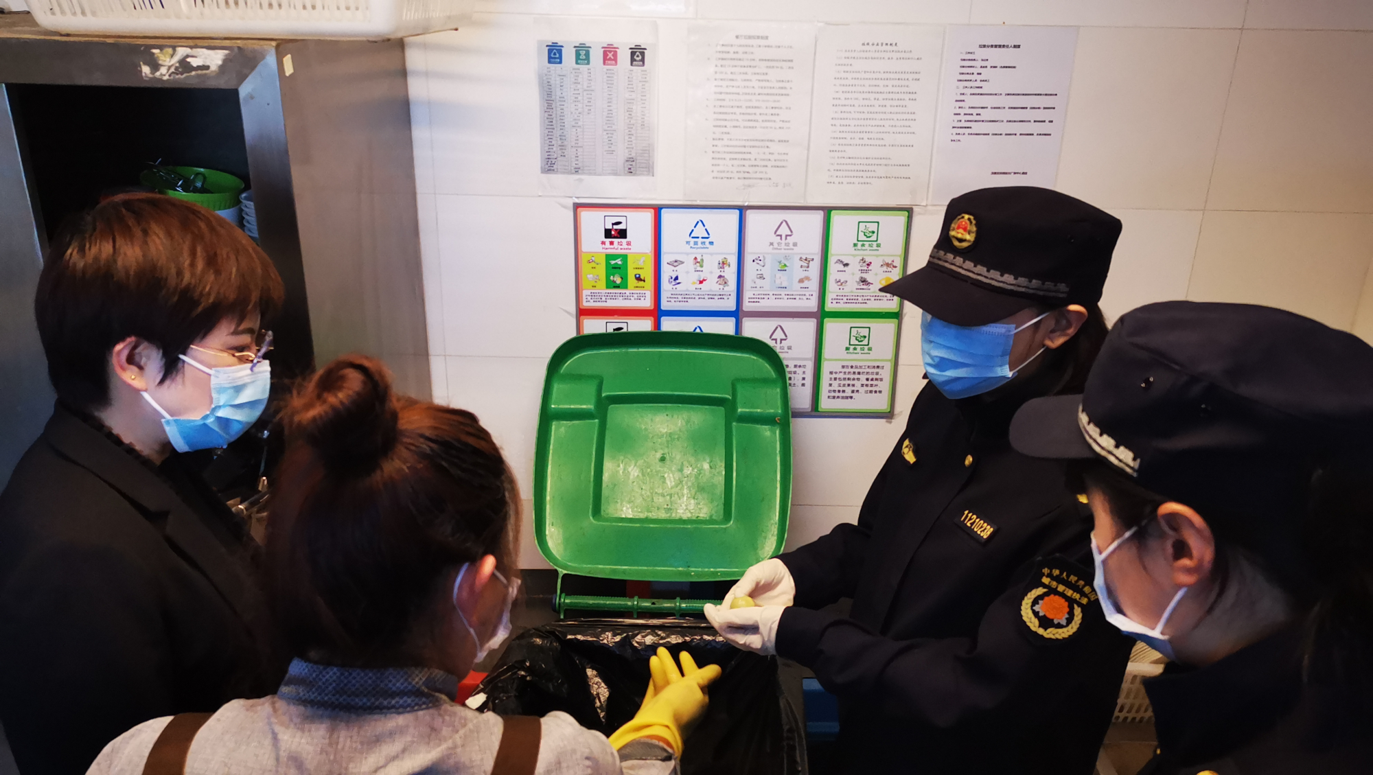 在北京市生活垃圾分类新规实施一周年之际,北京西站地区城管执法人员对辖区内宾馆酒店开展了一次专项执法检查。