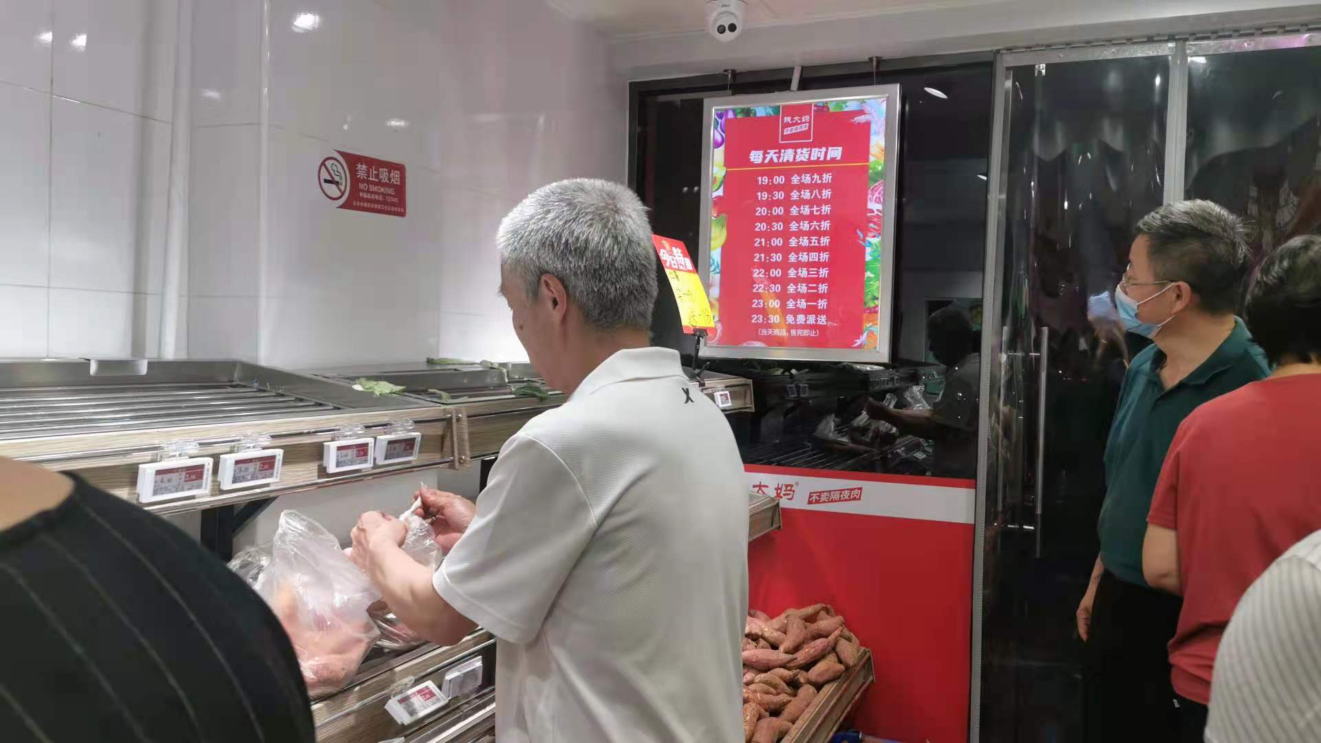 “再晚一会儿,就啥都没有了。”购物筐里塞着红薯、洋葱、蒜苗的刘女士正排队等着交款。此时,店里的货架上已经空了一大半儿,剩下的蔬菜寥寥无几,水果也只剩下一小堆散装的荔枝。按照店方的规定,如果晚上11时30分还有卖不掉的果蔬和鲜肉,店方就会把食物免费送给居民。“一般等不到免费赠送的时间,东西就全没了。”顾客李女士说,有一次晚上10点她去店里买东西,货架上就已经空空荡荡了。