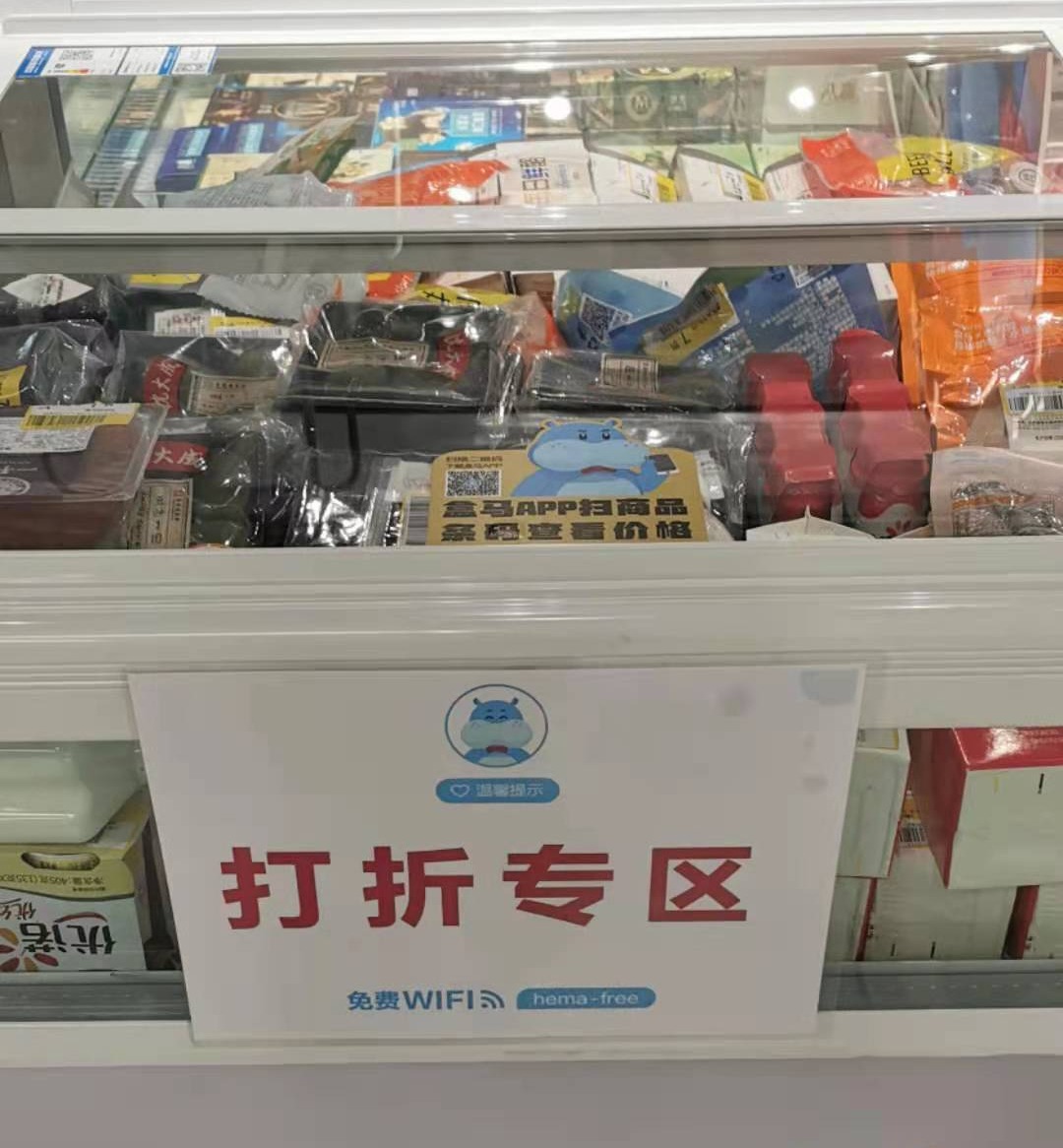 一年多前,因为每天会扔掉到期食品,连锁超市盒马鲜生曾饱受争议。如今不少消费者发现,盒马鲜生的货架上也出现了打折的临期食品。晚上9时许,在盒马鲜生西客站店的生鲜区域里,挑选商品的顾客还有不少,一些包装盒上贴着7折的促销贴纸。称重台的工作人员介绍,这些打折的水果是三天前上架的,每天店里的工作人员都对水果蔬菜等生鲜食品进行检查,如果发现有临近保质期的商品,就会进行打折处理。除了水果,奶制品区域有个贴着打折专区标签的冷藏柜,里面存放着不少保质期已经过半的包装食品,有肉肠、饮料、鲜奶、酸奶等,都是在原价的基础上打7折。