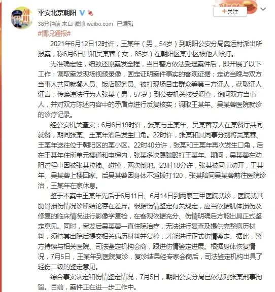 从警方通报的相关案情来看,被害人王某年的伤情构成轻伤二级,张某已涉嫌故意伤害罪,将被依法追究刑事责任。根据刑法第二百三十四条第一款规定,张某可能被判处三年以下有期徒刑、拘役或者管制。同时,本案中吴某蓉(女,85岁)系老年人,根据“两高”联合下发的《关于常见犯罪的量刑指导意见(试行)》中“常见量刑情节的适用”规定,对于犯罪对象为未成年人、老年人、残疾人、孕妇等弱势人员的,综合考虑犯罪的性质、犯罪的严重程度等情况,可以增加基准刑的20%以下。