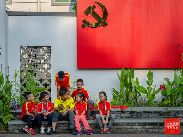浙江省淳安县枫树岭镇下姜村依托红色旅游资源,形成以乡村旅游产业为支柱,规模效益农业为补充的生态产业集群。图为下姜村党建广场,老师带领来此研学的孩子们学唱红歌。(浙江省杭州市淳安县纪委监委供 毛勇锋 摄)