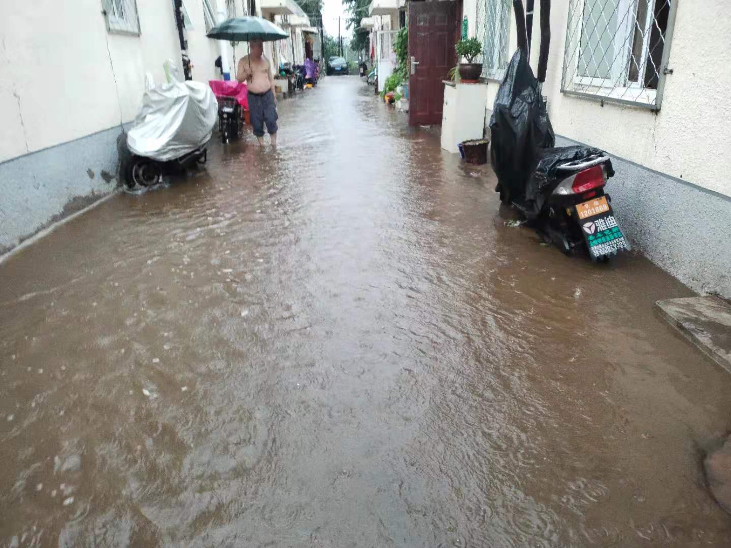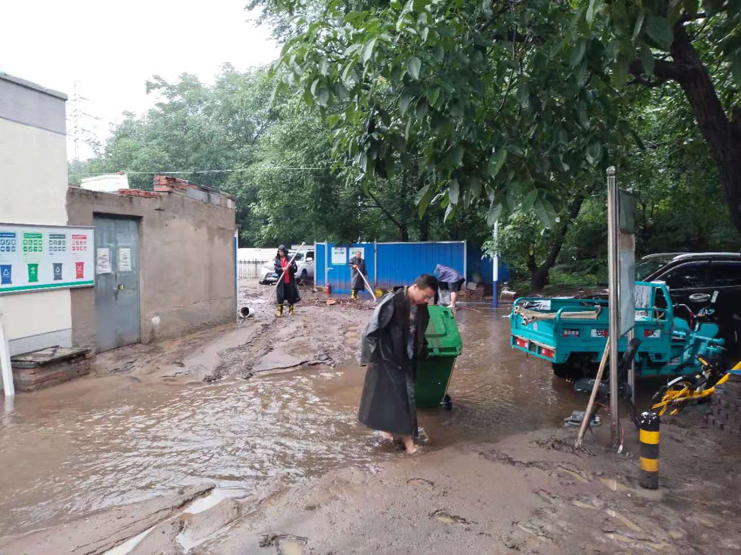 危险的是,山脚下就是四排平房,眼见着雨越下越大,积水有20厘米深,已经和居民家的门槛平齐,就要灌进家里了,赵义民连忙叫来了首开集团房地一分物业的工作人员前来支援清淤。