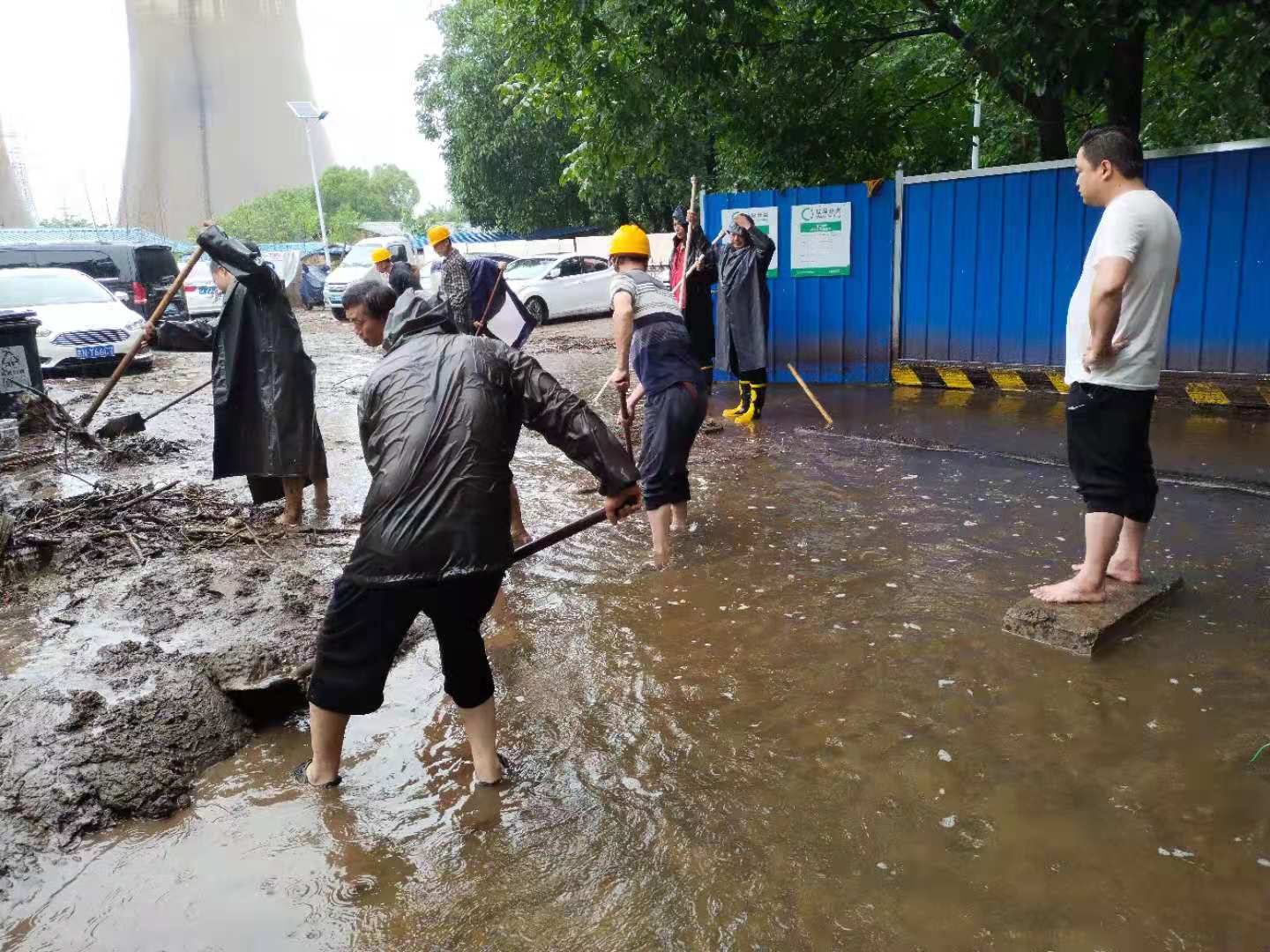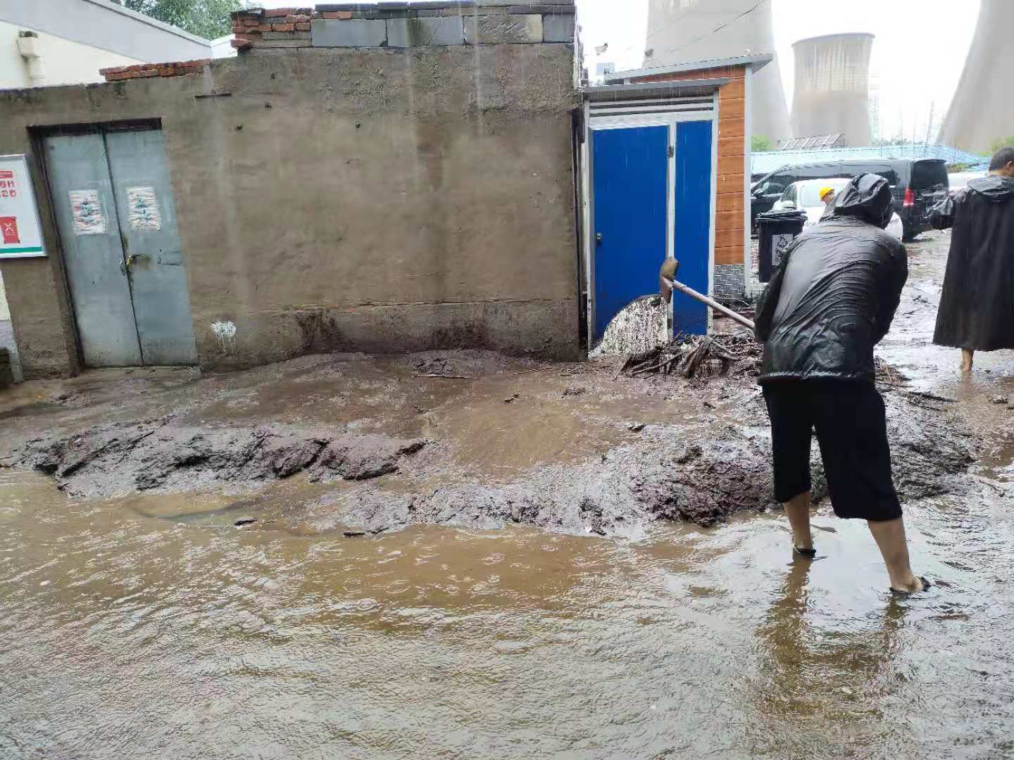 “雨箅子原本比周围路面要低一米左右,而在泥沙、杂物的堆积下,雨箅子所在位置已经和周边路面一样高了,雨箅子下的排洪沟渠也被堵塞,工作量之大可想而知。”赵义民说,他们先将垃圾桶移开,接着,十余位物业工作人员手持铁锹、耙子把杂物一点点往外捞,再运往路边不影响交通的高地上,如此循环往复多次。虽然穿着雨衣,可没过多久,雨水夹杂着汗水,工作人员们的衣服就全湿透了。