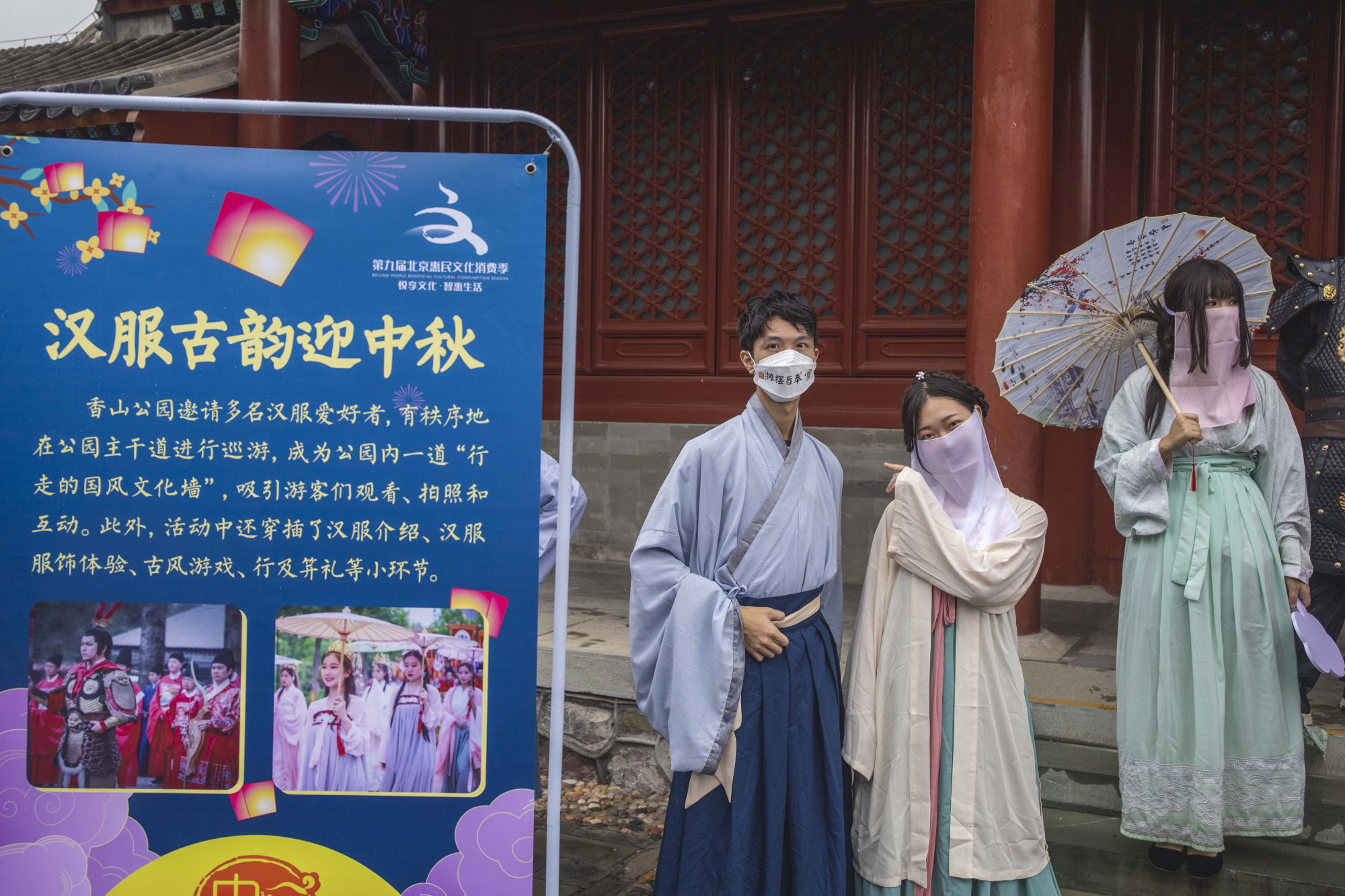 汉服是中华民族传统文化的载体之一,在传统佳节之际,香山公园邀请汉服爱好者来园,在园区内开展了一场汉服“快闪”游园会。