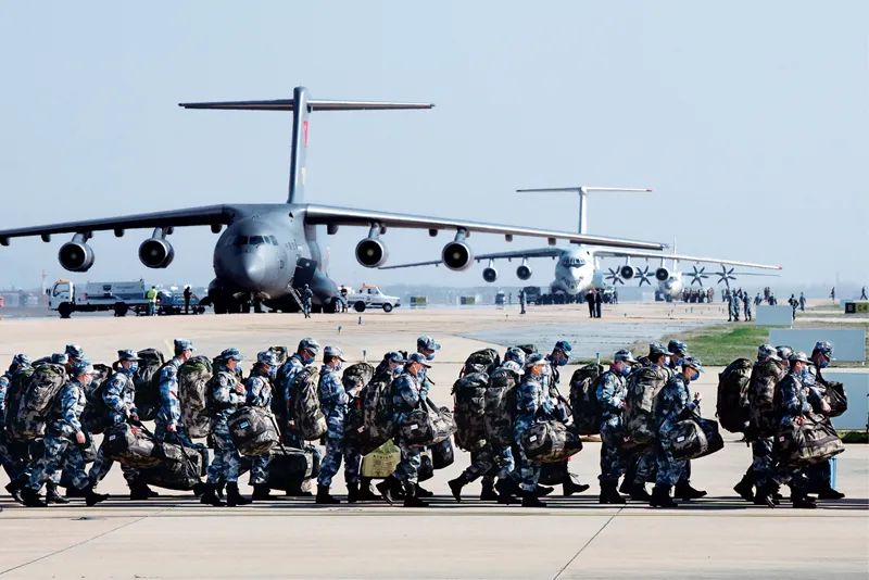 2020年2月17日,运-20等三型多架运输机满载军队支援湖北医疗队医务人员和物资,抵达武汉天河机场。目前,军队共派出3批次4000多名医务人员支援武汉抗击新冠肺炎疫情。解放军报记者 范显海/摄