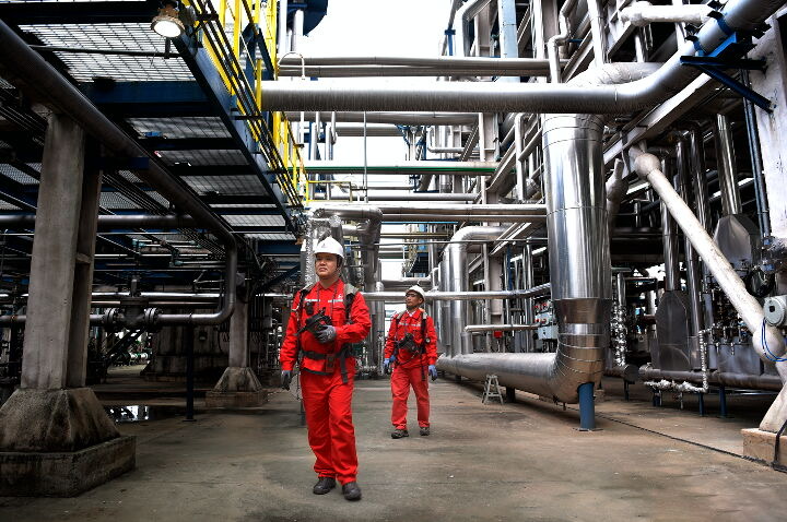 10月20日,中国石化西南石油局元坝气田员工在巡检净化设备运行情况。(中国石化西南石油局供图)