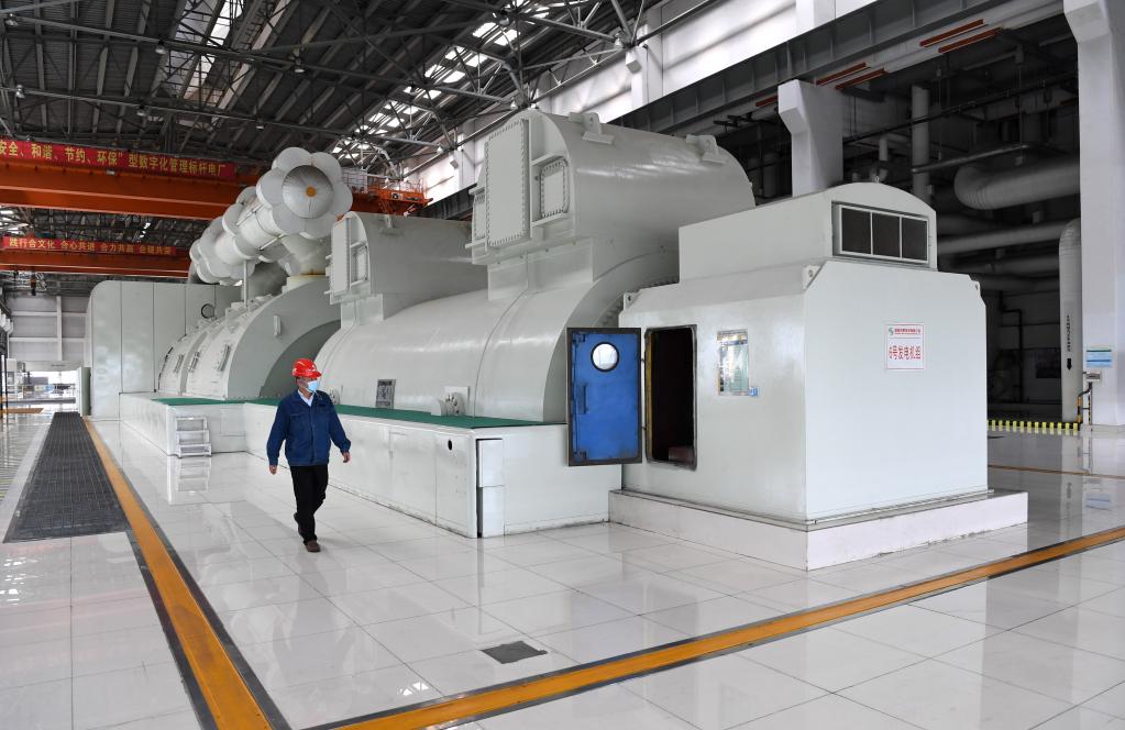 10月21日,皖能合肥发电有限公司工作人员经过发电机组。新华社记者 刘军喜 摄