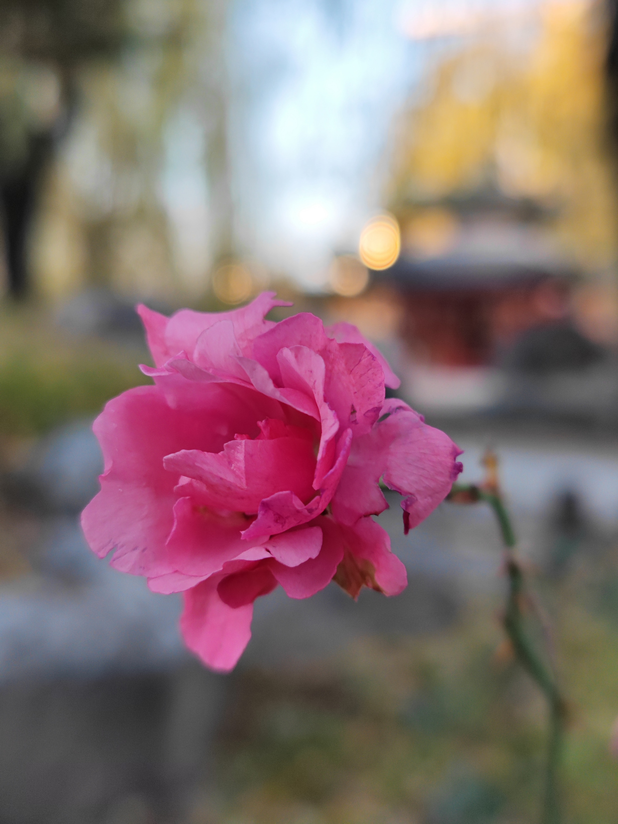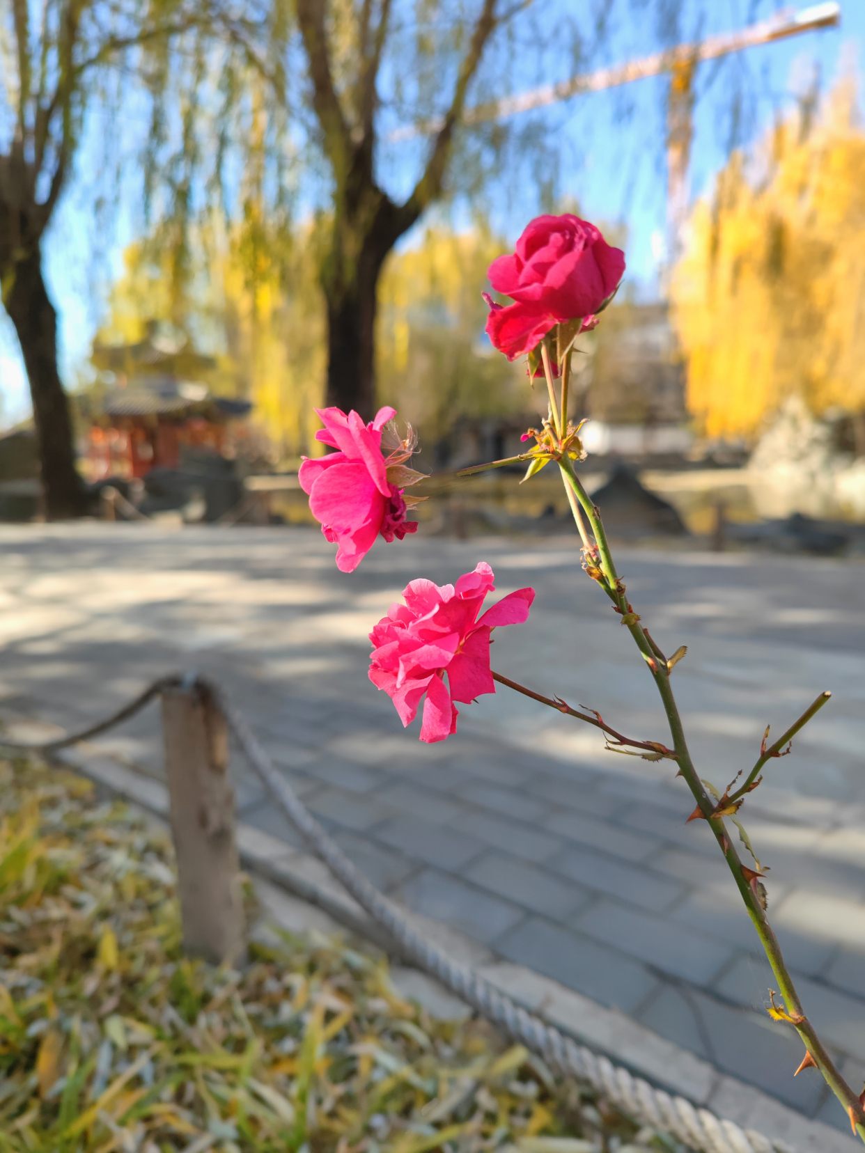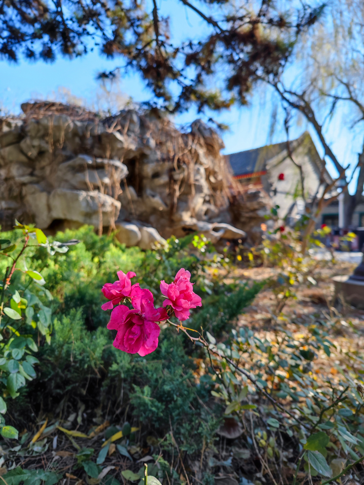 北京大观园里有一株在冬天盛开的月季花