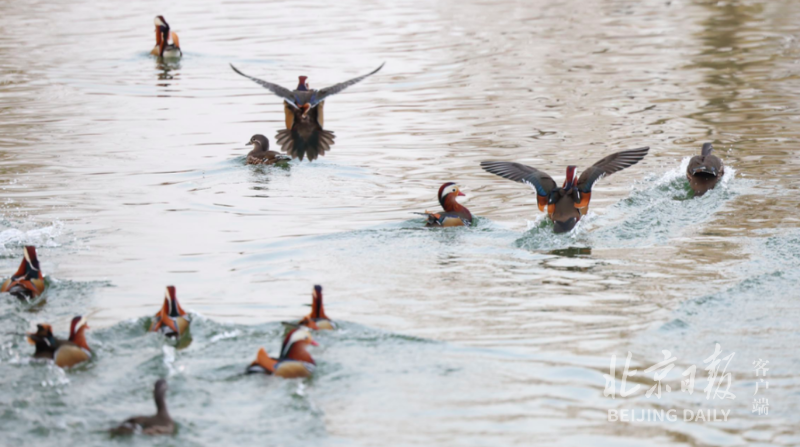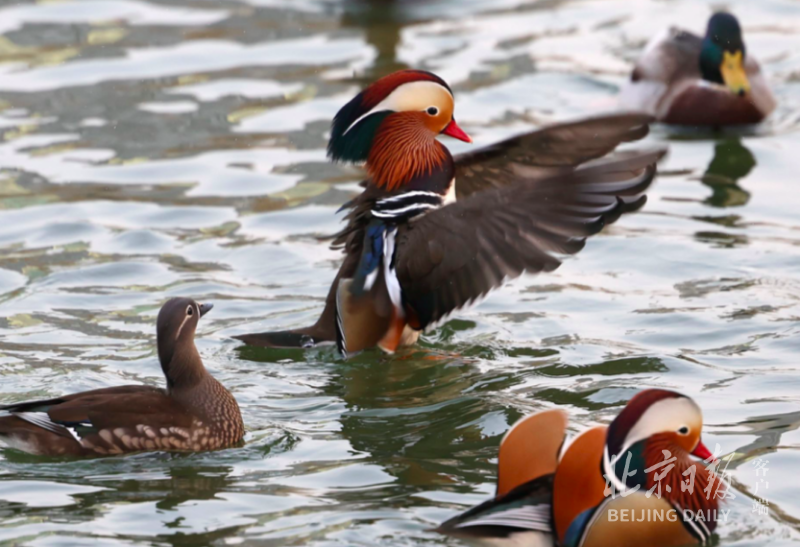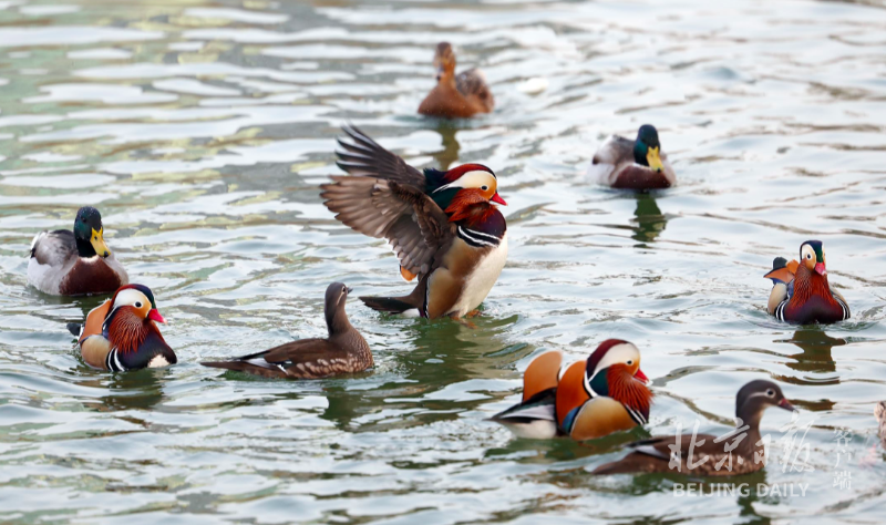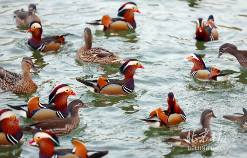 周末的北京龙潭公园迎来了一批批观鸟的游客,初冬时节龙潭湖里与野鸭同池嬉戏的鸳鸯成为人们眼中明星,人们久久驻足岸边关注。