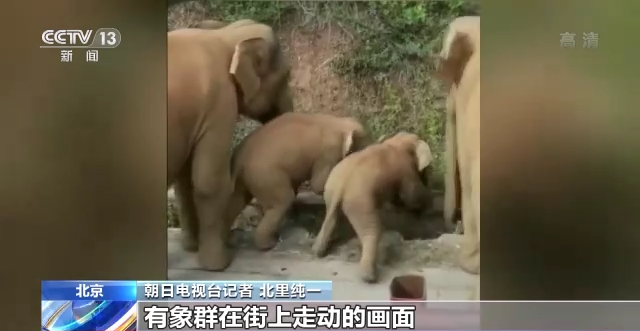 朝日电视台记者 北里纯一 :看到社交媒体上,有象群在街上走动的画面,当时我们很快就赶到云南进行采访。