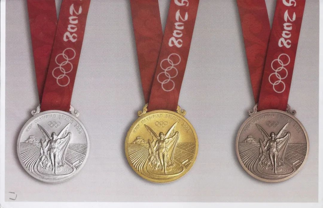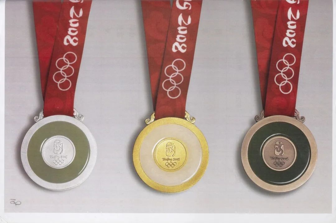 北京2008年奥运会奖牌(配有挂带背面,北京市档案馆藏)
