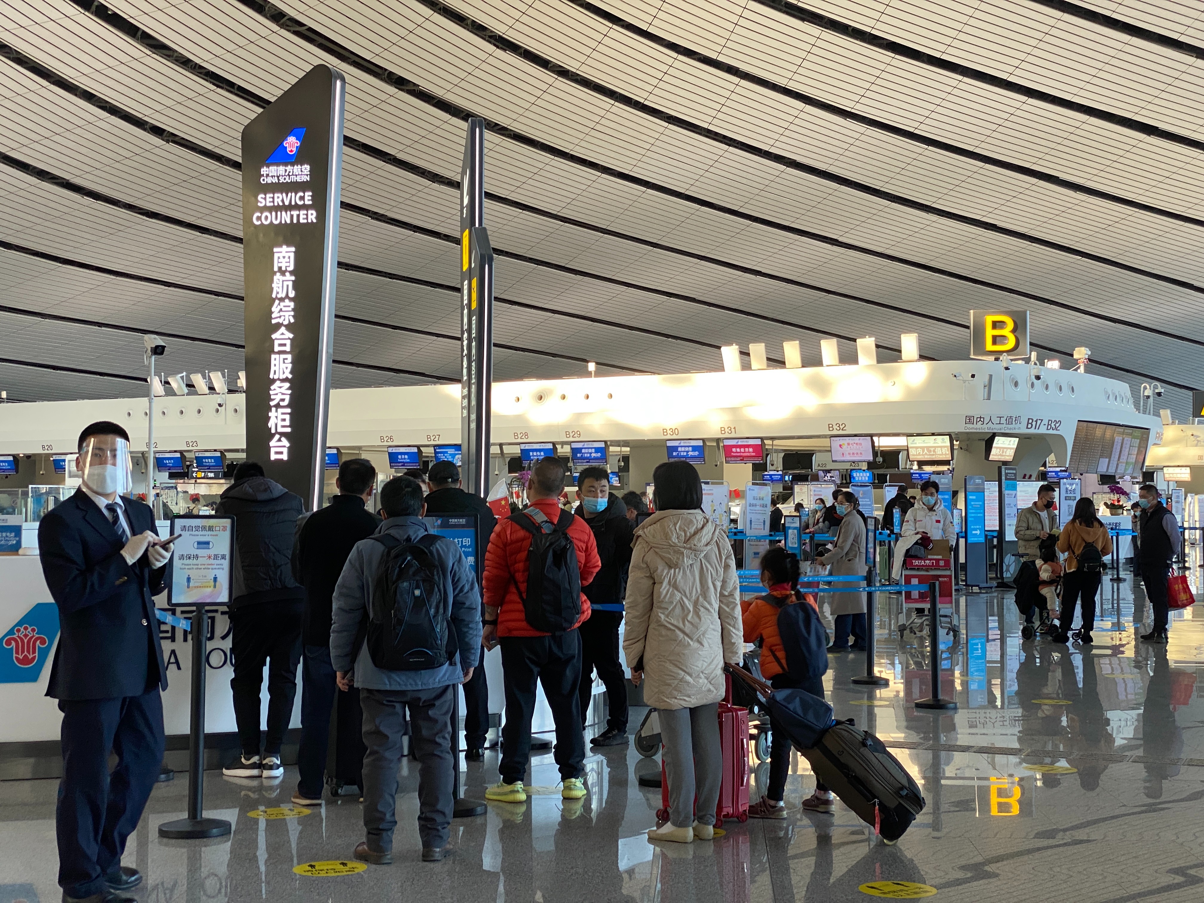 大兴机场运行管理部值班经理魏业升介绍,因疫情期间倡导市民群众非必要不出京等多重因素叠加,春运期间预计大兴机场客流量相对比较平稳,春节假期客流量会迎来小幅上升。此外,针对降雪、大雾等特殊天气,大兴机场将进一步优化协调机制,全面做好航班延误的各项预案,确保告知信息畅通和物资供给充足。大兴机场特别提醒,当前国内外疫情防控形势依然严峻,广大旅客出发前一定提前了解目的地防疫政策,以免影响出行。