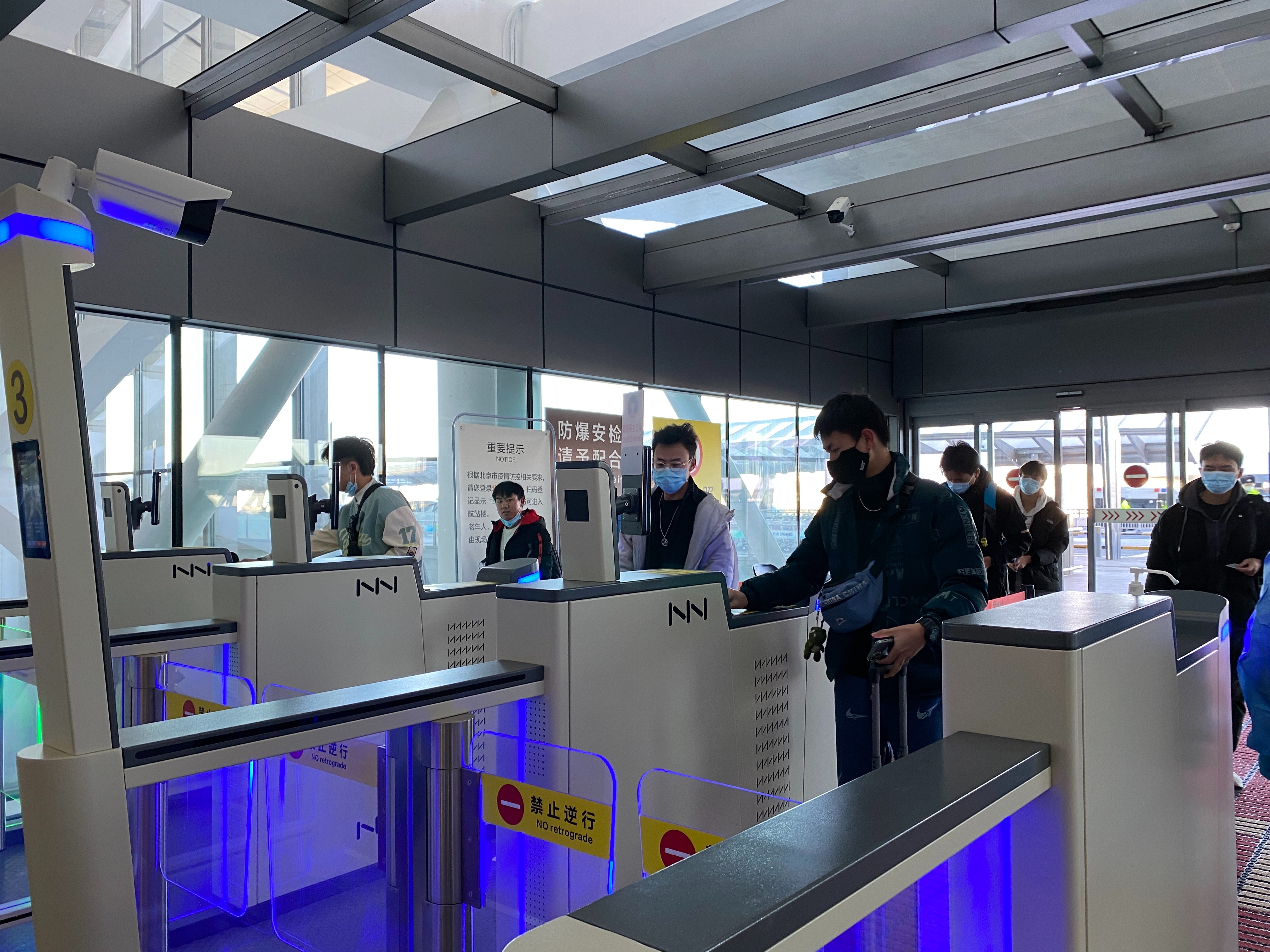 “刚才扫码测温了吗?”进入大兴机场航站楼,许多旅客发出这样的疑问。原来,在航站楼三层、四层10个出入口,大兴机场共安装了30台查码测温一体化闸机,旅客只需要刷身份证就能完成北京健康宝电子信息的精准采集,实现“无感”通行。“刷证的同时还能测温,通关只要5秒钟,比传统的扫码测温时间大为缩短。”机场安检人员介绍,大兴机场是全国首批安装这种设备的机场,实现了人员“无感”通行。此外,针对没有北京健康宝的旅客,机场还专门设立了人工通道,方便旅客乘机。