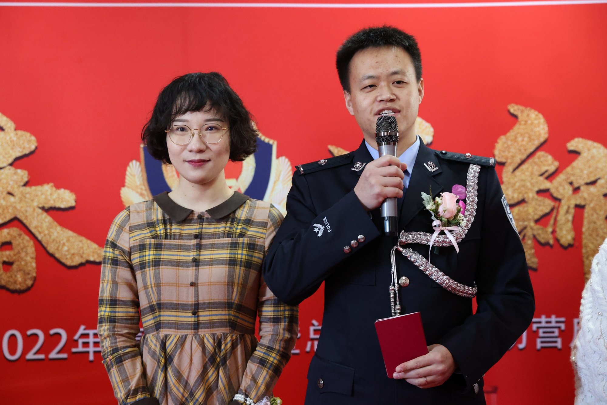 一位新娘则满脸幸福地说到:“感谢总队的关心,使我们拥有了如此难忘的集体婚礼,满足了我对婚礼的憧憬和向往,也加深了对警察这份工作的理解和支持。以后的日子里,他守护好大家,我经营好小家,我会用我的全部支持他和他的工作,随时准备把他‘上交’给组织,‘上交’给国家!”