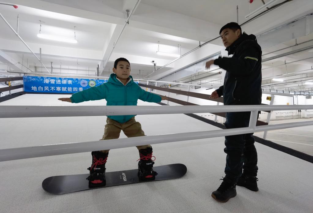 沈阳市浑南区第九小学学生在老师指导下学习滑雪。新华社记者王莹 摄