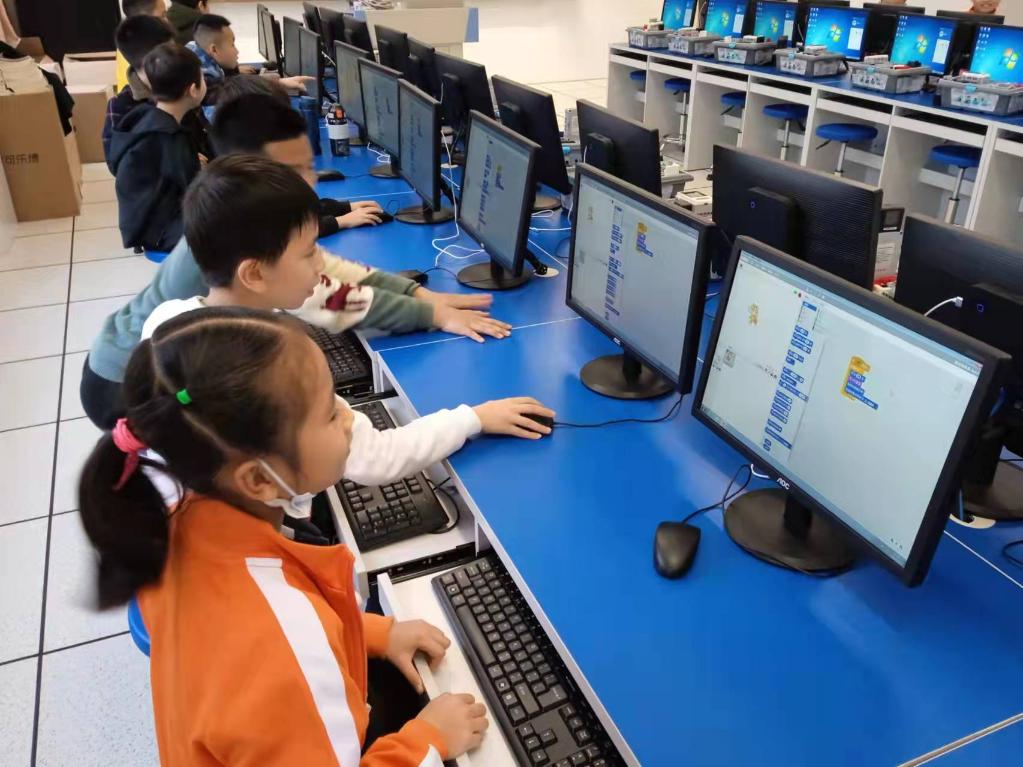 广州市黄埔区新港小学寒假托管班在上人工智能课。(受访者 供图)