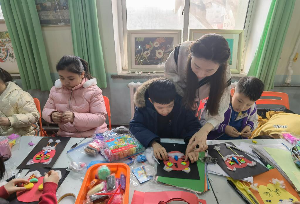 “老师教会了我做‘巧手虎头帽’,先用红色纸剪出虎头图案贴在深色卡纸上,再用彩色轻黏土、棉花做出老虎的五官和胡子……”沈阳市和平区和平大街第一小学五年级6班学生李炎儒说,过去放假一般是在家写作业、看电视,现在可以和同学们一起做手工、学习冬奥歌曲、进行冰上体育运动,特别开心。