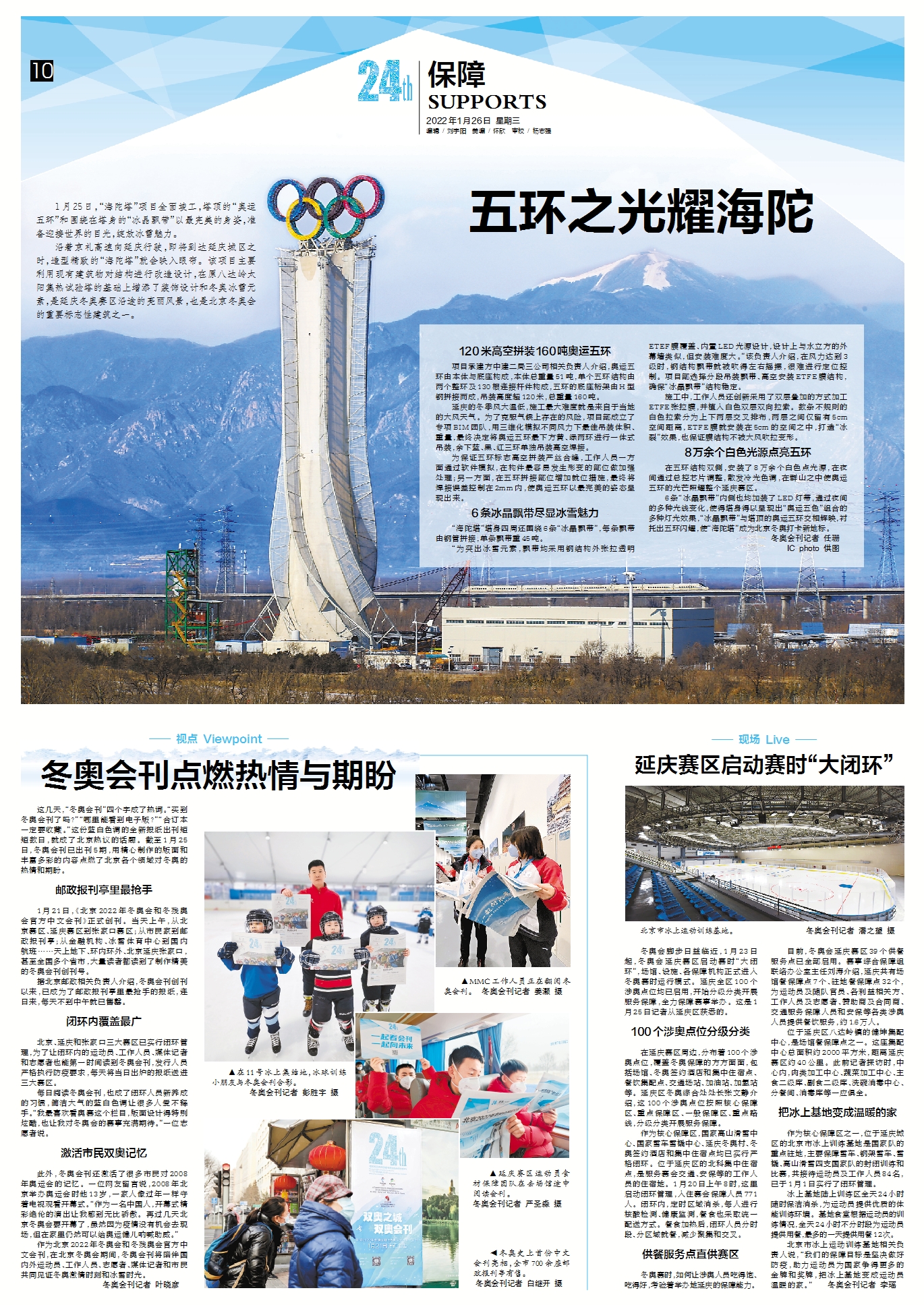 1月25日,“海陀塔”项目全面竣工,塔顶的“奥运五环”和围绕在塔身的“冰晶飘带”以最完美的身姿,准备迎接世界的目光,绽放冰雪魅力。