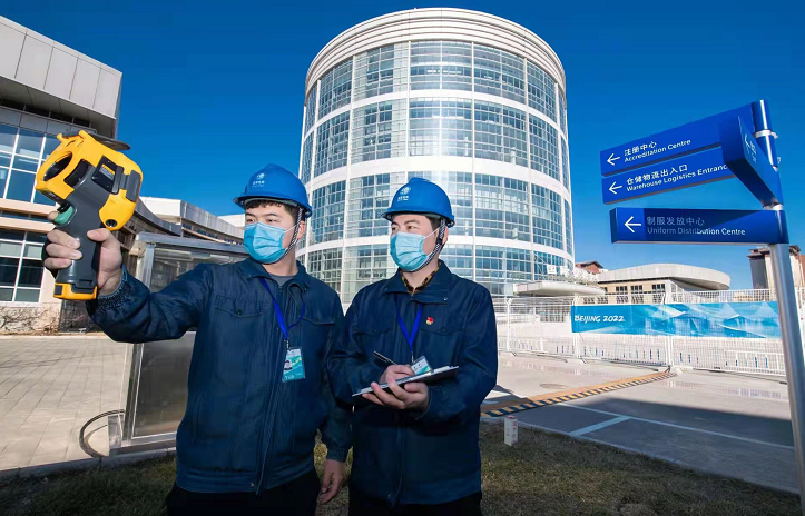 冬奥延庆制服和注册分中心电力保障团队,使用红外测温仪检测场馆电力设备,保障场馆安全可靠供电(李锦龙摄)