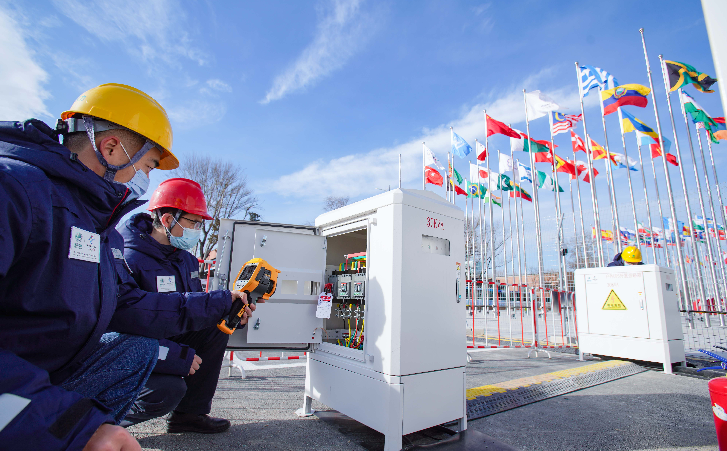 为进一步提高供电可靠性,全面满足场馆灯光音响、计时计分等设备电力需求,北京朝阳供电公司提前完成冬奥正式比赛临电工程建设,新增预装式配电室、箱变、不间断电源(UPS)等各类低压电力设备,并在比赛期间对其开展不间断巡视,同步开启视频监控系统,以“人防+技防”模式确保场馆电力设备保障无死角。