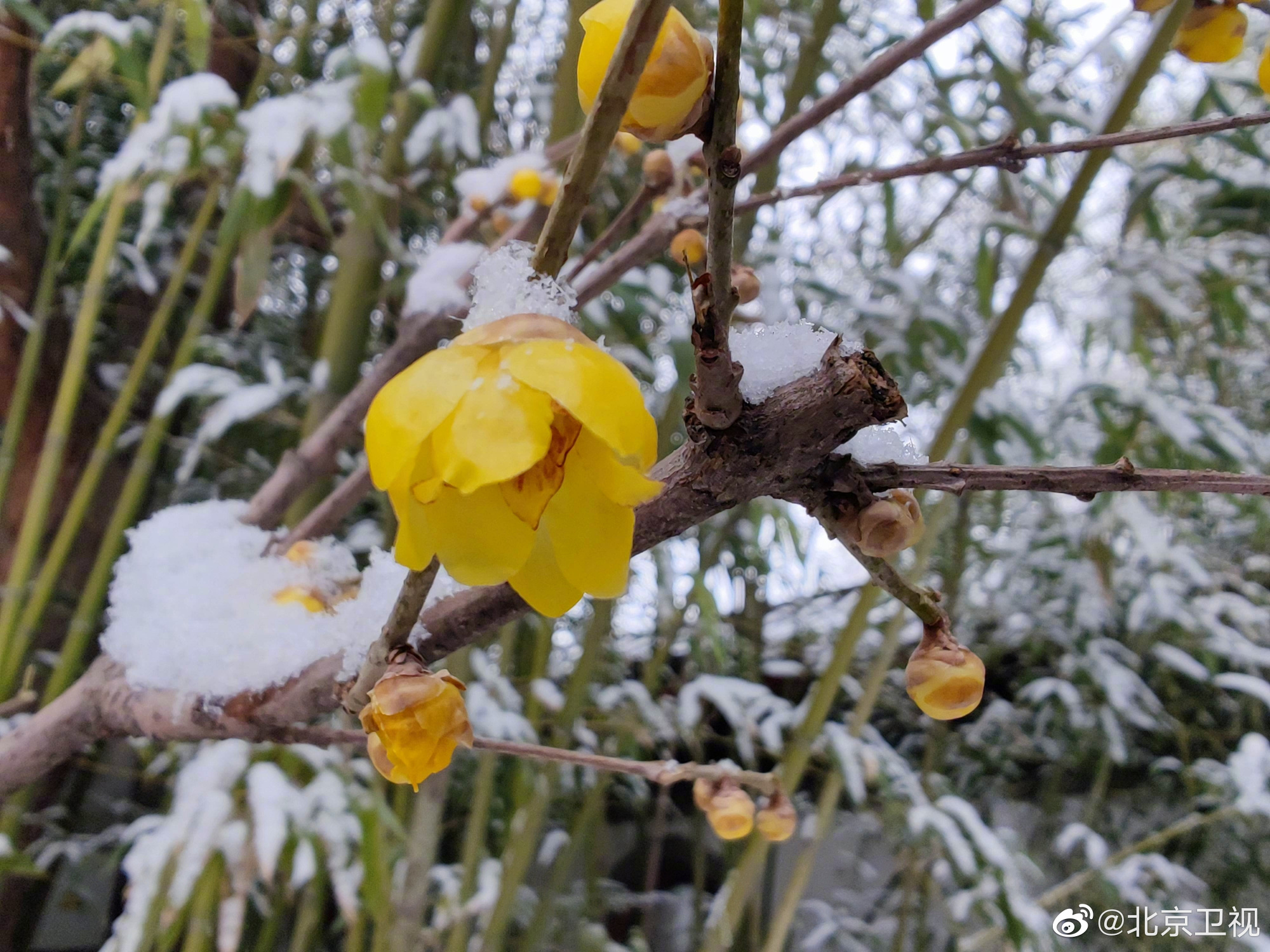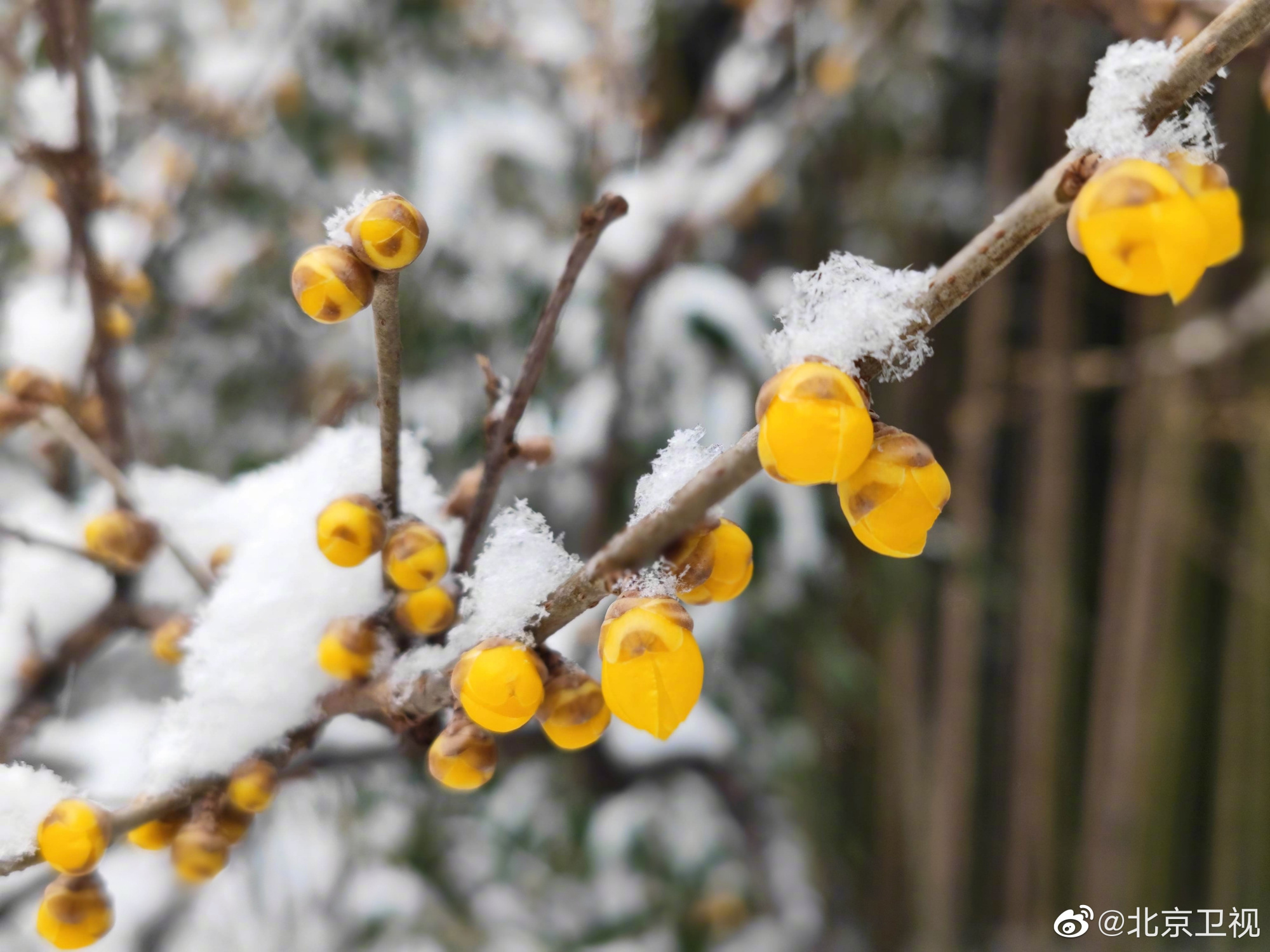 春近寒虽转,梅舒雪尚飘。虎年初雪如期而至,在皑皑白雪落满京城之时,中山公园带来了新的色彩!雪白的背景下绽放出点点繁星,暗香浮动,腊梅花的绽放给庄严肃穆的中山公园在圣洁的背景上增添了几分冬日的诗意!如此美景仿佛梦中世界,让人流连忘返,沉浸其中不愿离去