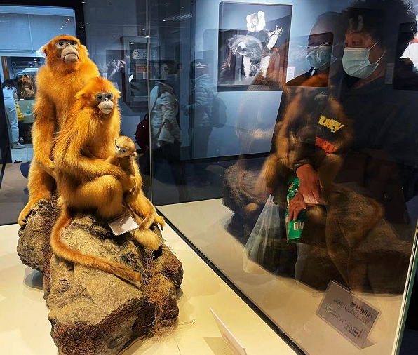 自然博物馆还特别精选了6具标本与摄影作品配合展出。其中,最难得一见的当属一具高鼻羚羊的标本,是首次在自然博物馆展出。苗雨雁介绍,高鼻羚羊是一种极危动物,多分布在哈萨克斯坦、土库曼斯坦等国。该物种野外繁殖能力极强,种群数量恢复之快令人难以置信。然而,非法狩猎、气候变化等多种因素导致这一物种数量急剧下降。“我们希望观众通过展览与动物产生更多的共情,更加自然地生发出对地球生物多样性的关注、对生态环境保护的关注。”