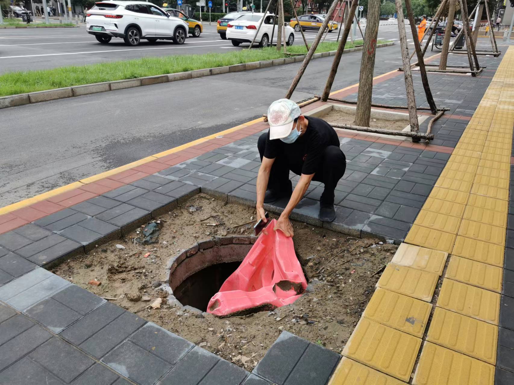 随着亚洲最大铁路枢纽客站丰台站开通运营,位于火车站南侧的接驳道路桥安西路也热闹起来。有居民反映,这条道路两侧人行步道上多个窨井缺失井盖成“陷阱”,存在安全隐患,也给周边居民出行及前往丰台站的游客带来不便。昨天,丰台区城管委第一时间介入查找窨井责任单位,并要求问题解决不过夜。今晨记者回访时看到,4口缺失井盖的窨井,其中两口废弃的窨井已经填平,另外两口也补齐了井盖。