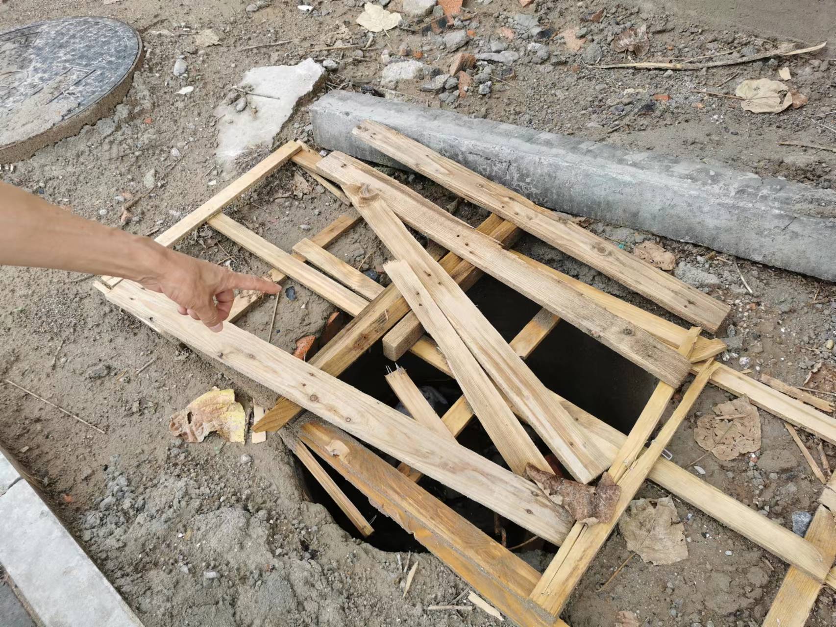 提起遮挡窨井的塑料桩、旧木棒,多位居民都表示,这些井从今年初开始就未设井盖,“不知道该找哪个部门,为了安全,大家只能就近取材,路边找些废弃物品简单挡一下。”武女士说。