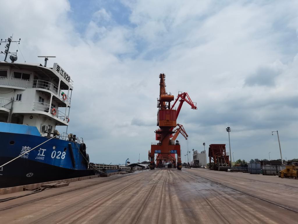 在马鞍山市长江港口有限公司码头,冲洗水及雨水直排长江的情况已改变。新华社记者水金辰摄