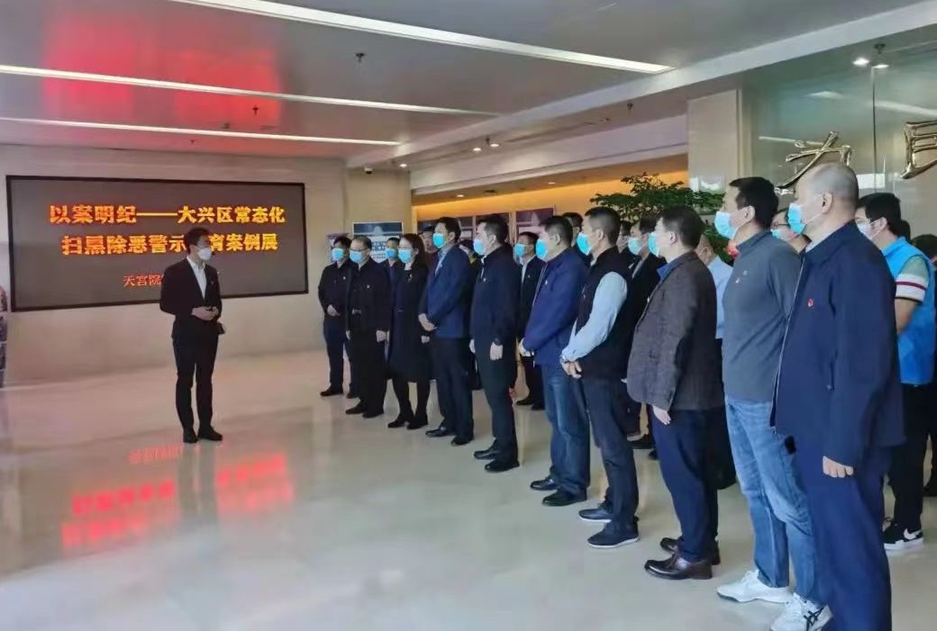 天宫院街道组织党员干部参观扫黑除恶警示教育展。