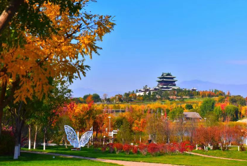 永宁阁丹枫台是世园公园登高点,登临远望,世园秋景尽收眼底。特别是丹枫台东侧,今年新增加了300株丽红元宝枫,将使丹枫台周边秋色更加迷人,红色、绿色、黄色、粉色、橘色……各种颜色的花草树木在园区铺染,如火如荼,别具一番豪迈意境。