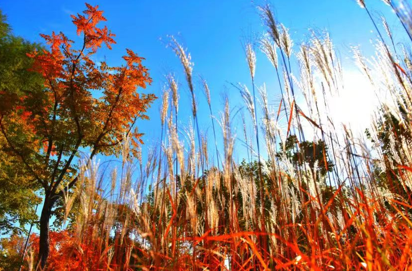 秋风拂过妫河两岸,世园公园内,枫叶染霜,银杏飘黄,构成一幅亮丽明快的画卷。9月28日,北京世园公园第二届红叶生态文化节拉开帷幕,由于9月中旬至今延庆气温普降又小幅回升,且早晚温差大,今年公园的彩叶期比往年提前了十天,园区内150余种、5万余株彩叶变换色彩,美轮美奂。文化节将持续到11月8日,历时42天。