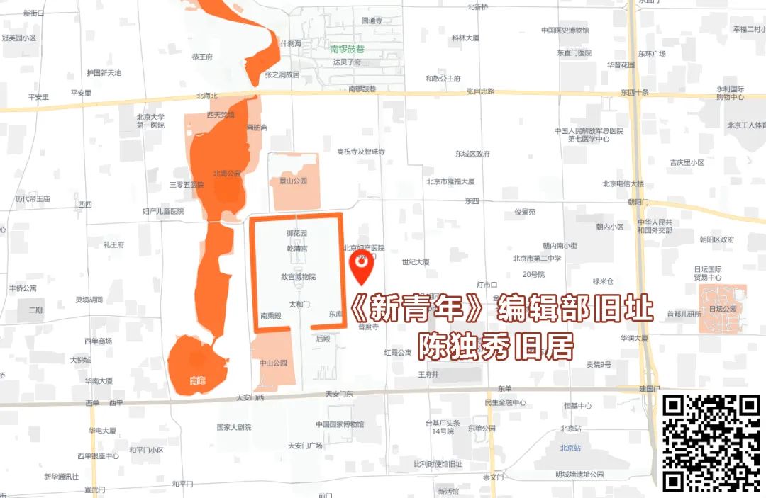 《新青年》编辑部旧址(陈独秀旧居)位于东城区北池子大街箭杆胡同20号(旧门牌是箭杆胡同9号),有北房三间,南房三间,靠街门倒座小房一间。