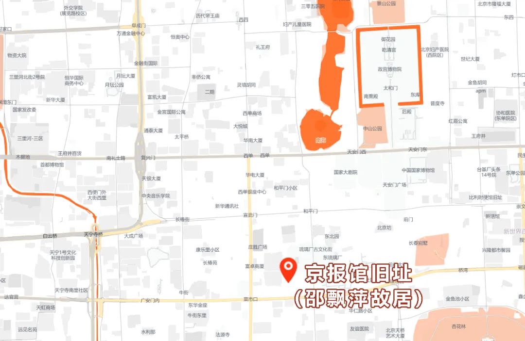 京报馆旧址(邵飘萍故居)位于西城区骡马市大街魏染胡同30号、32号,文物建筑面积近820㎡。《京报》由邵飘萍于1918年10月创办,京报馆最初位于前门外三眼井38号,后迁到琉璃厂小沙土园胡同,1925年10月迁至现址。