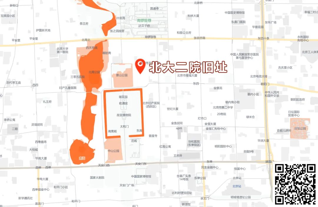 北大二院旧址(原北大数学系楼)位于东城区沙滩后街55、59号一带原京师大学堂院内,建于1904年,砖木结构,高两层。