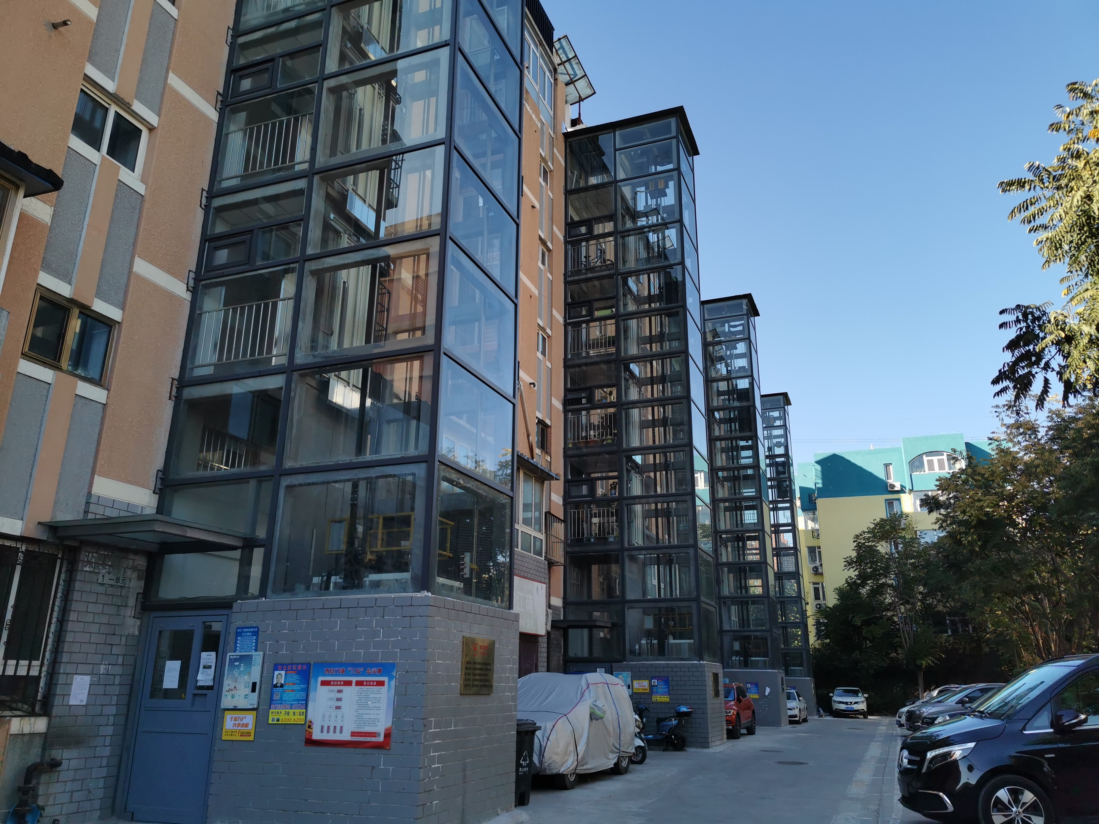 然而,里仁东街小区5号楼加装电梯的工程遇到的第一个难题,仍然是硬件问题。张陶然说,在施工方案设计过程中发现,一般传统方式加装电梯是贴着楼的,按照住宅建筑相关规范要求,每个单元至少应有一个出入口可以通达机动车,现状条件无法满足相关要求。经西城区住建委、属地街道、社区、施工方及居民共同协商,集思广益,最终破解了难题。“电梯厢体不再贴着楼建,而改为贴着院墙的一侧,电梯和楼之间用连廊衔接。”