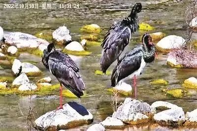▲监测到的黑鹳(图片来源:顺义区水务局唐指山水库管理所)