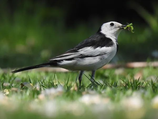 ▲白鹡鸰在草坪上觅食(摄影:郭耕)