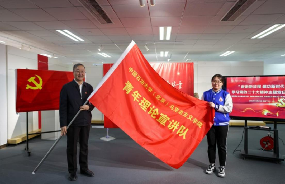 中国石油大学(北京)党委书记陈峰为青年理论宣讲队授旗