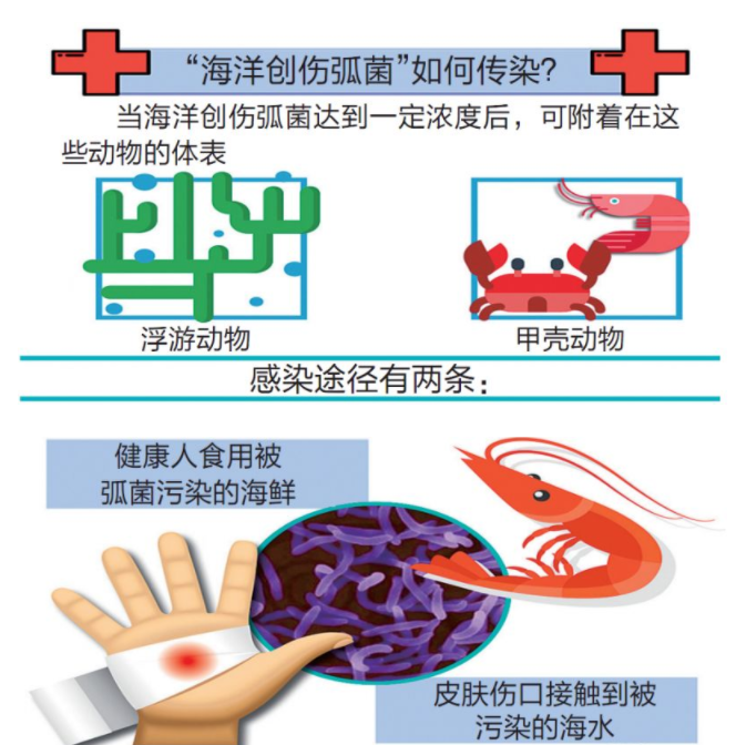 创伤弧菌最适宜的生存温度是30至40摄氏度的海水,高温烹煮可以有效杀死细菌。预防创伤弧菌,还要尽量避免伤口接触海水,避免进食生的或未煮熟的海鲜,尤其是贝类(如牡蛎)。