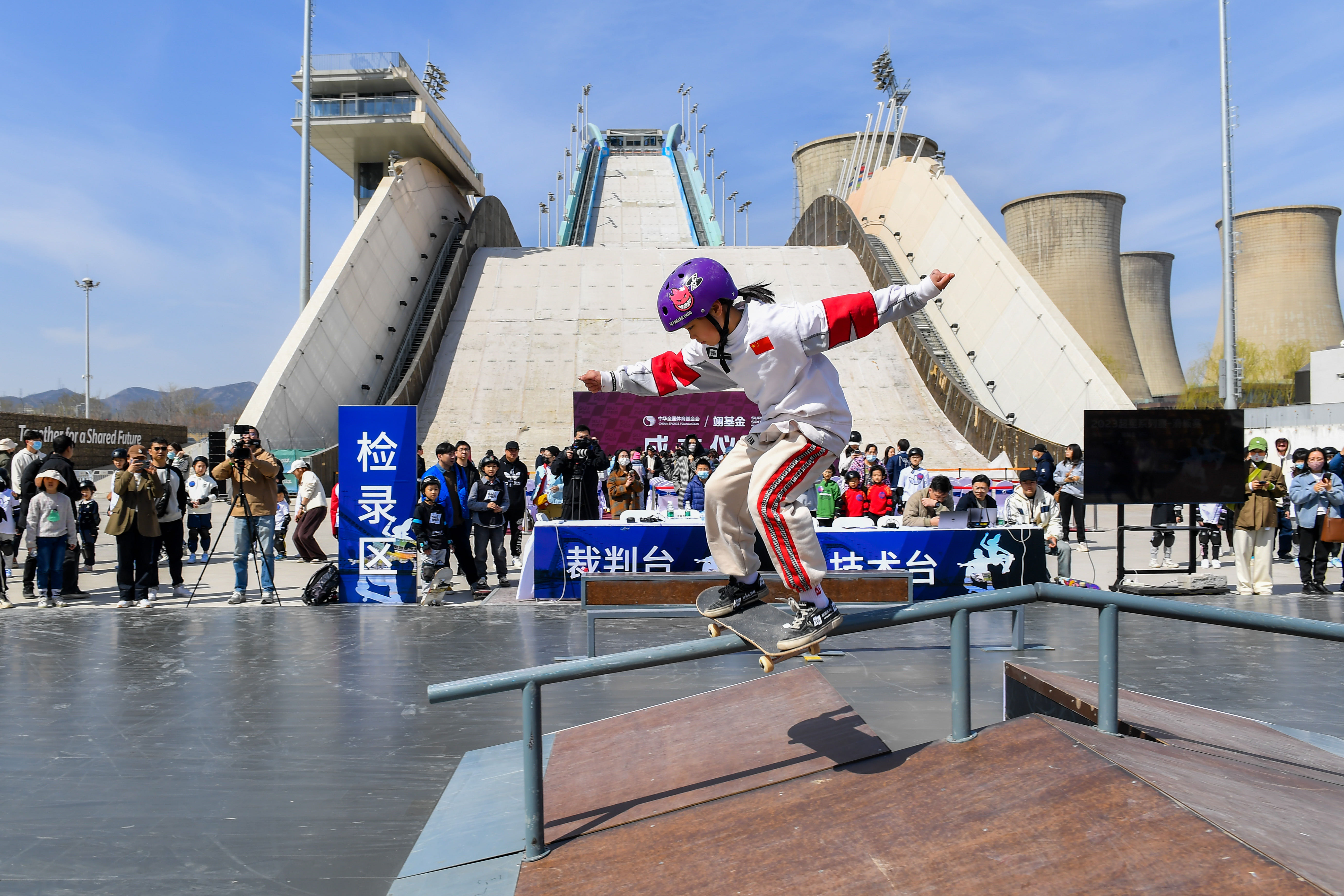 除精彩的比赛外,启动仪式当天还邀请了中国滑板国家队的小队员们,为观众带来了一场精彩绝伦的滑板表演秀。同时,现场还邀请了北京数所中小学校的学生代表参与体验互动,在专业教练的带领下,亲身感受滑板运动的魅力和乐趣。